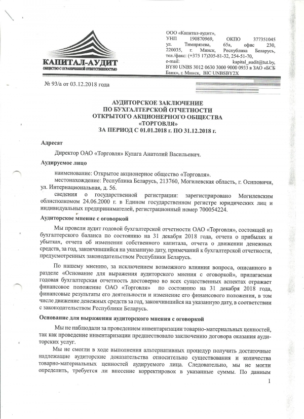 - Информация об открытом акционерном обществе Торговля и его деятельности за 2018 год
